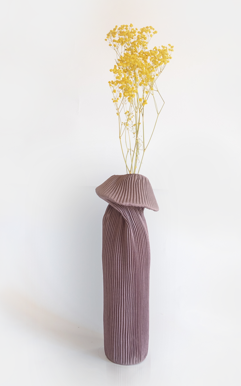 Die Kollektion "Mauve" ist eine wunderschöne Reihe von Vasen aus Textilien, die jeden Raum auf elegante Weise bereichern. Die Vasen gibt es in unterschiedlichen Formen und Optiken, von glänzend bis hin zu Revers und Plisse. Jede Vase ist einzigartig und strahlt eine besondere Ästhetik aus.